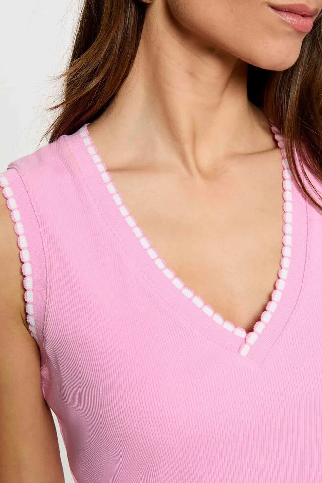 Bandas en contraste en el cuello y las sisas