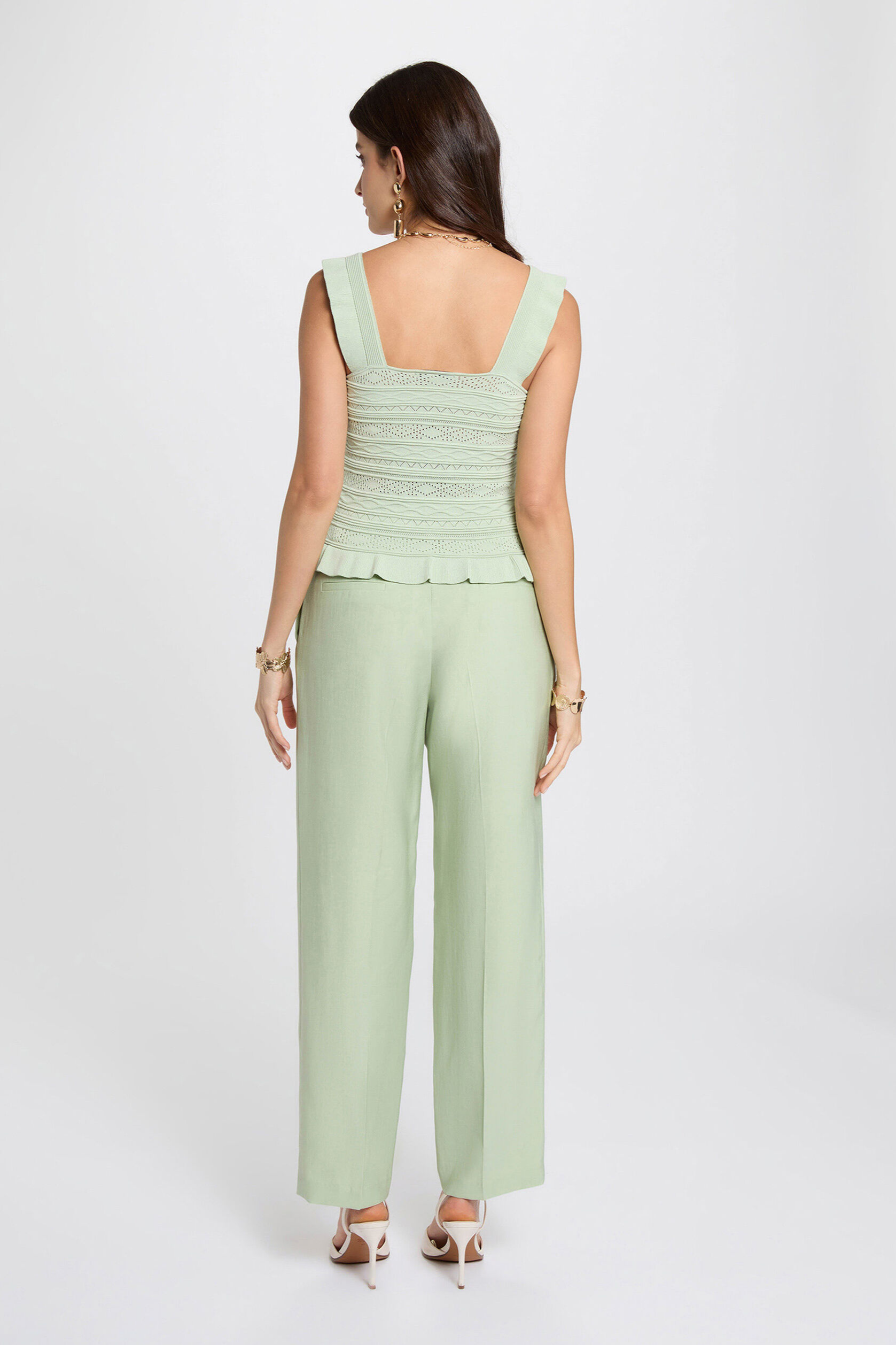 Este jersey ajustado cropped encarna una feminidad moderna y de tendencia. Su escote cuadrado dibuja un delicado escote, añadiendo un aire sofisticado al conjunto. Los volantes aportan movimiento con sutileza, realzando su encanto único. Su corte ceñido al cuerpo resalta las formas con elegancia para un estilo seguro y actual.