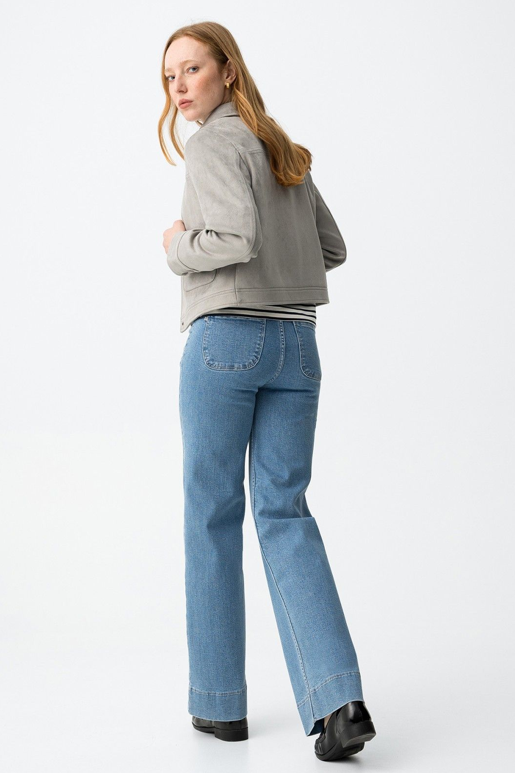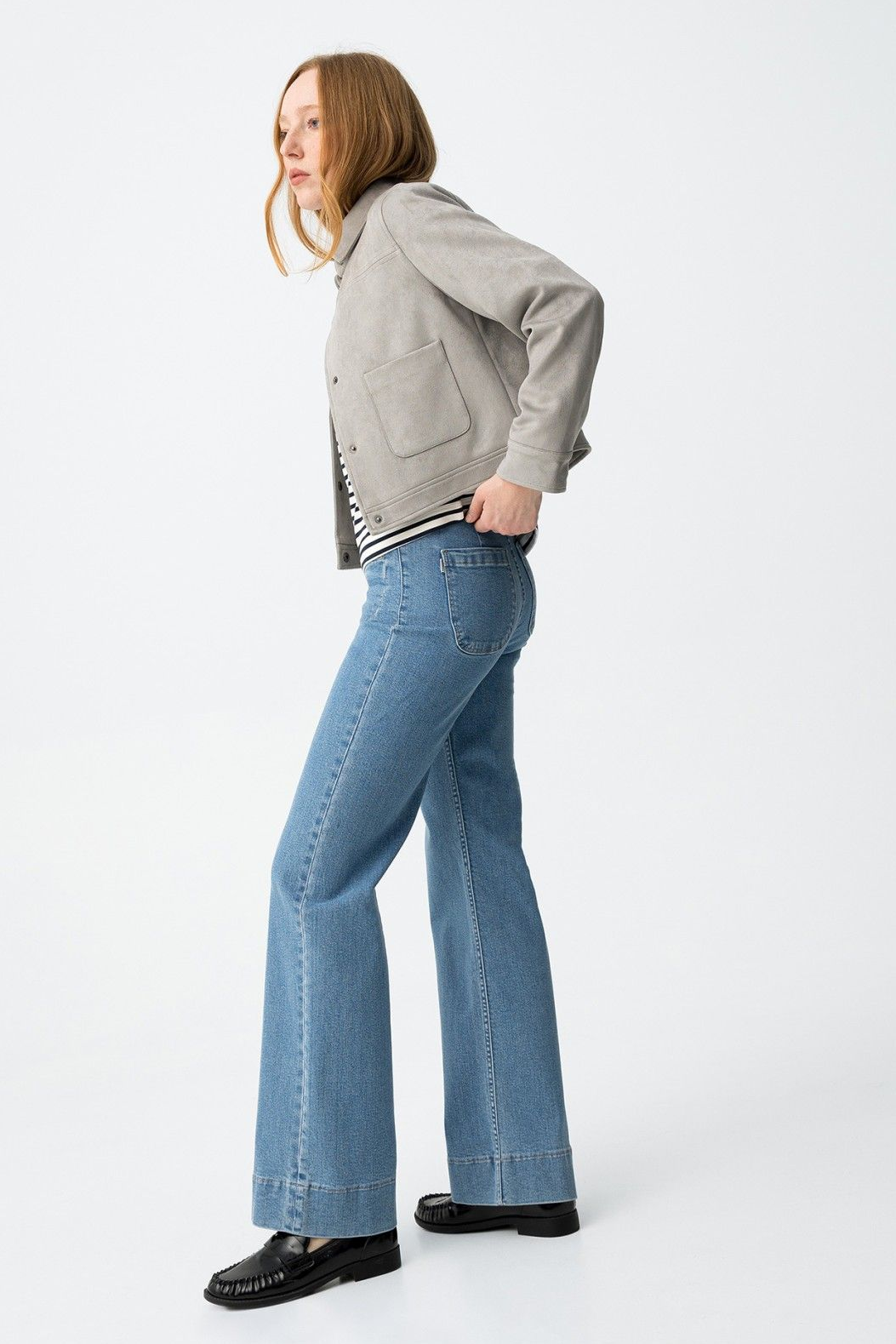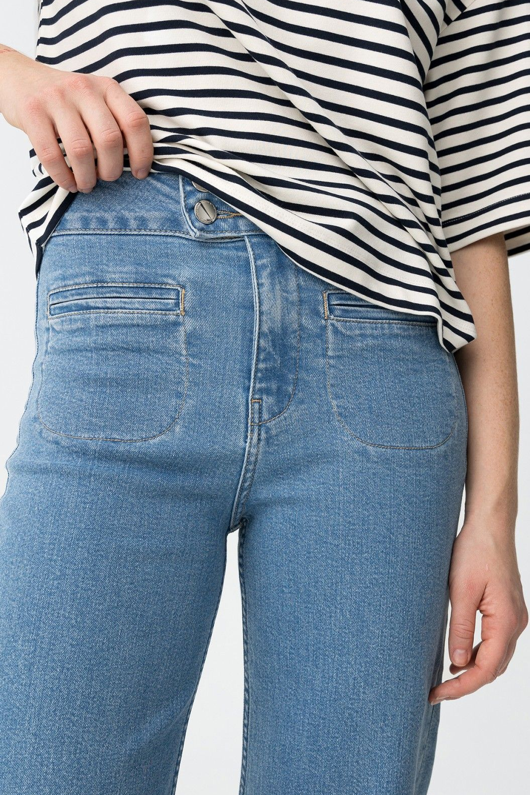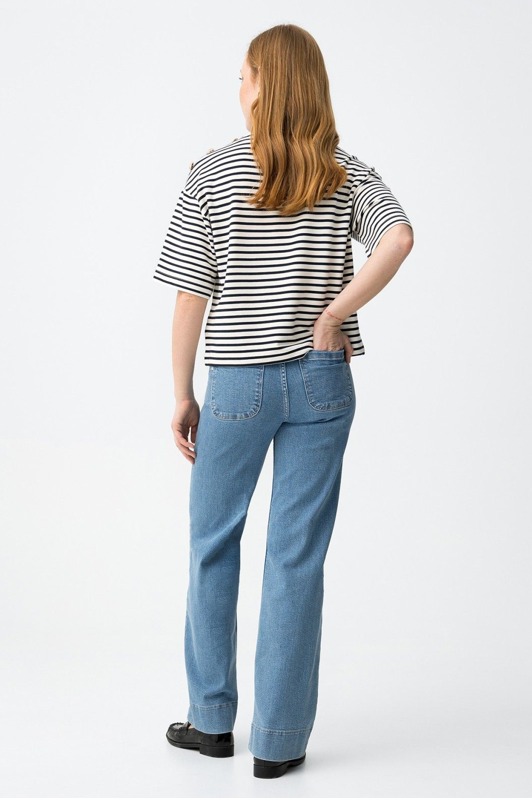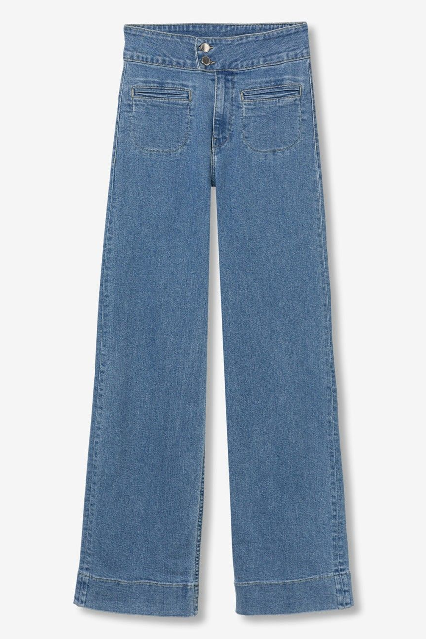 Vaqueros de corte recto en azul clásico, con bolsillos traseros y cierre de botón metálico.99% COTTON 1%ELASTANE