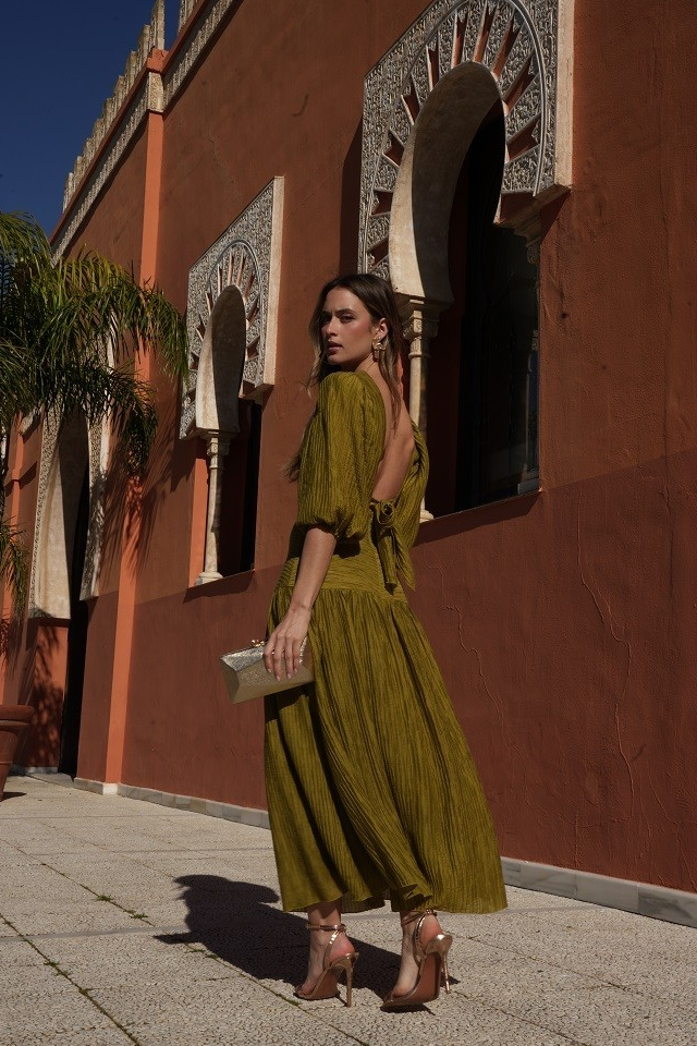 El conjunto René en color oliva combina sofisticación y estilo en un diseño pensado para destacar en cualquier evento especial. Su top con espalda descubierta y lazada aporta un toque atrevido y femenino, mientras que la falda midi con forro realza la silueta y mantiene la caída perfecta de la prenda. Ideal para bodas, comuniones, bautizos o cualquier evento especial, este conjunto combina color, textura y detalles refinados, perfecto como vestido de invitada moderno y elegante.